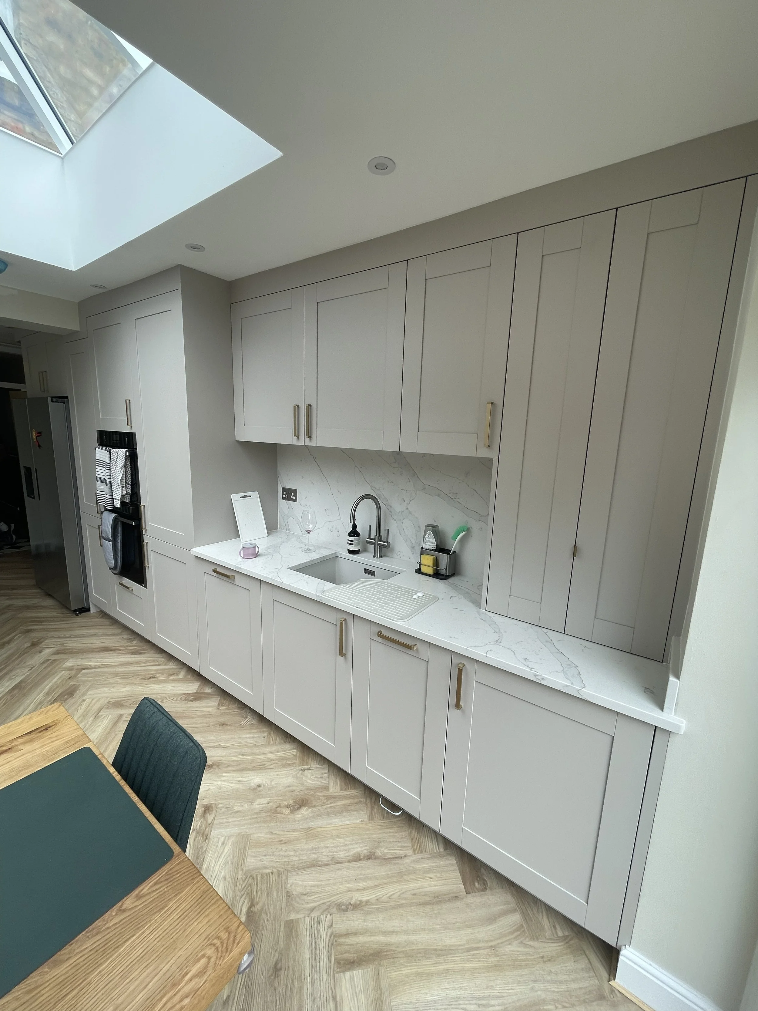 All kitchen installations are carried out by skilled trades, with a focus on quality workmanship and coordination throughout. We manage all aspects of the project, including the carpentry, plumbing, electrics, plastering and decorating. We work with reliable suppliers to ensure materials and fittings meet the highest standard.